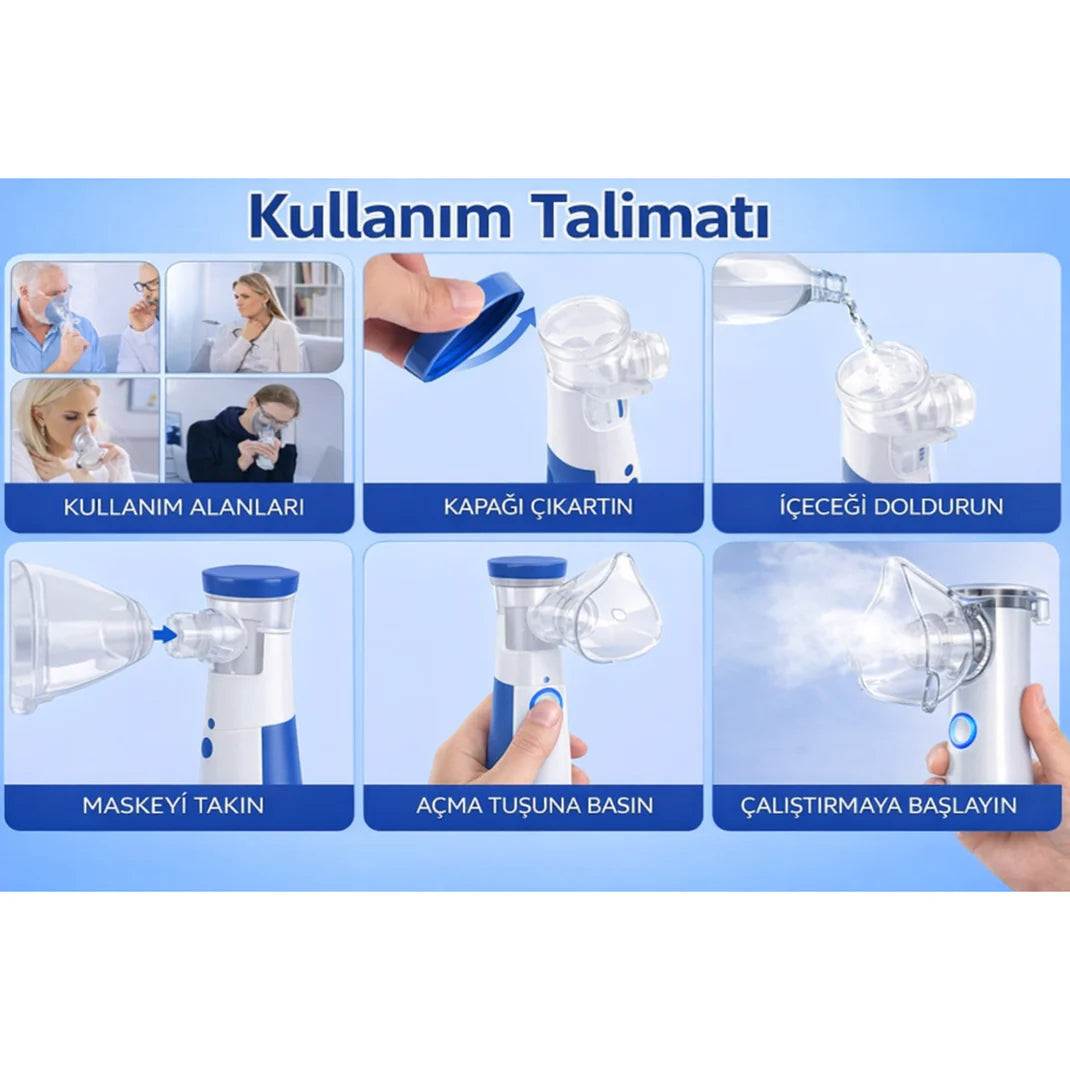 Astım, KOAH, grip ve boğaz hassasiyeti gibi durumlarda kullanım için tasarlanmış, kompakt ve etkili bir solunum desteği sunar.